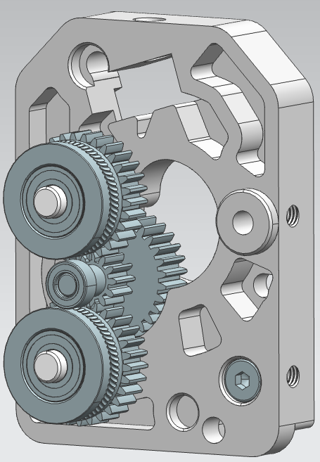 2.放入压接传动齿轮和放入两颗压接好的啮合齿轮,确保啮合齿轮内上下各塞入两颗轴承,传动齿轮上方预压轴承。