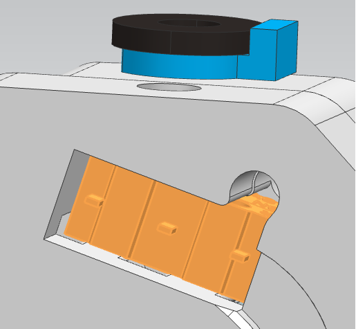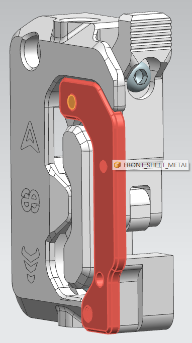 3.压臂安装到前注塑件上,前注塑件用圆头螺丝M3x9连接金属前盖板,以此约束压臂