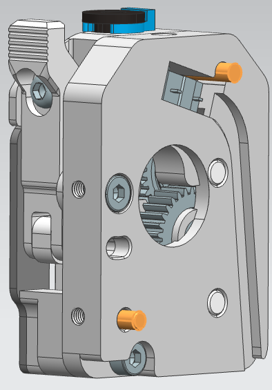 7.安装断料传感器(放入4mm钢珠和微动开关,微动开关从上到下用M2x10自攻螺丝锁紧)