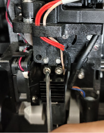 用机器自带的内六角扳手逆时针拆卸热端固定螺栓。