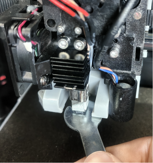 重新上电开机,将热端温度加热到280℃后等待一分钟,以使所有组件温度均衡,取下硅胶保护套,使用开口扳手逆时针热拧紧喷嘴。